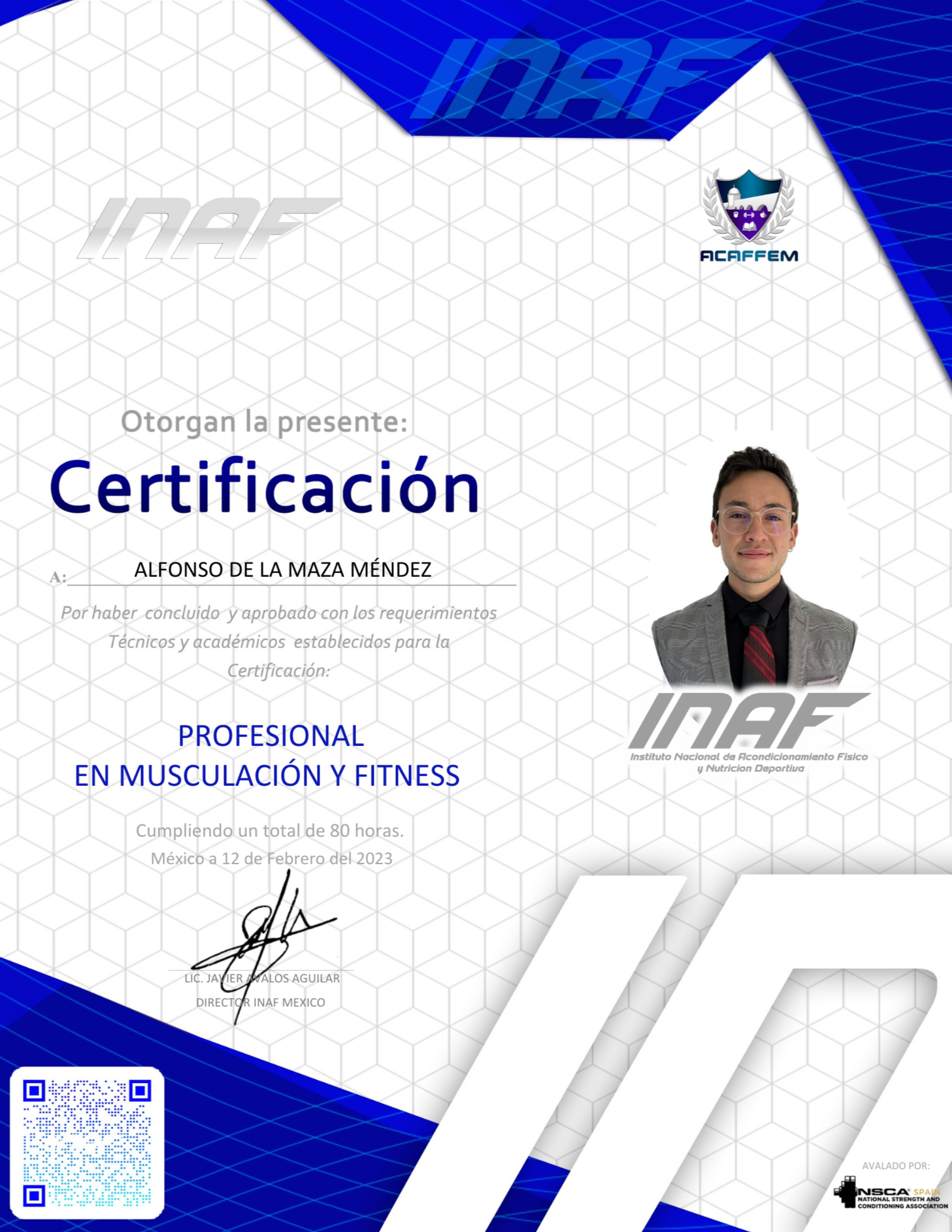 Soy egresado de la UAM Xochimilco y cuento con diversos diplomados en Nutrición y Deporte, además de certificaciones como entrenador y antropometrista ISAK nivel 2.